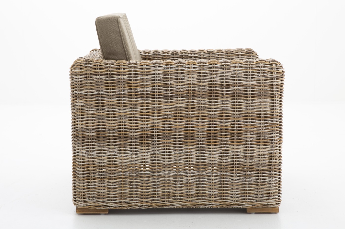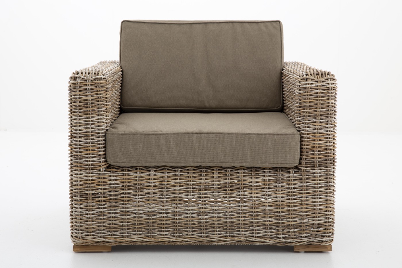HILLS Gartensessel für Innen- und Ausseneinsatz. Der Stoff ist wasserabweisend und hat einen UV-Filter, er ist beständig gegen Salzwasser und Chlorwasser. Die Füllung ist drakonisch und hat folgende Eigenschaften: belastbar, abriebfest, wasserabweisend, schnell trocknend und stark.